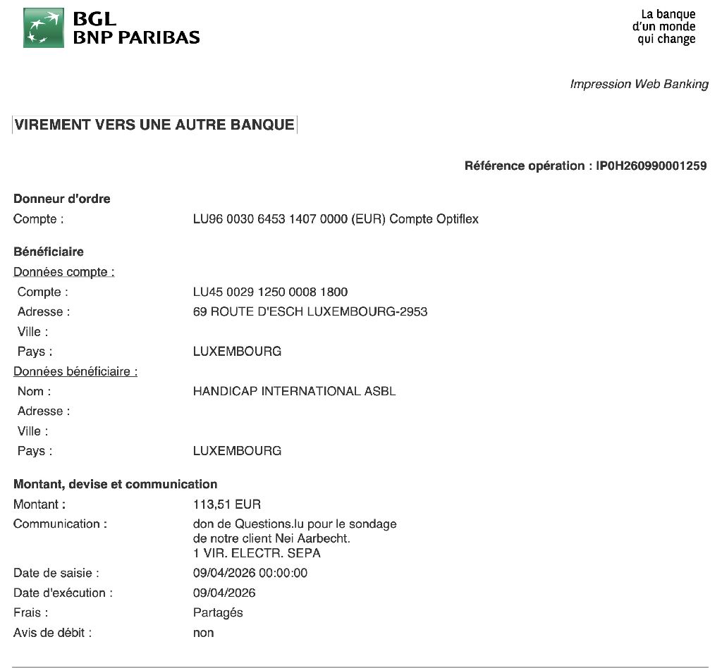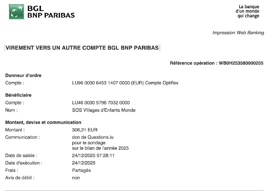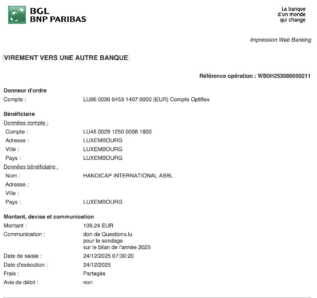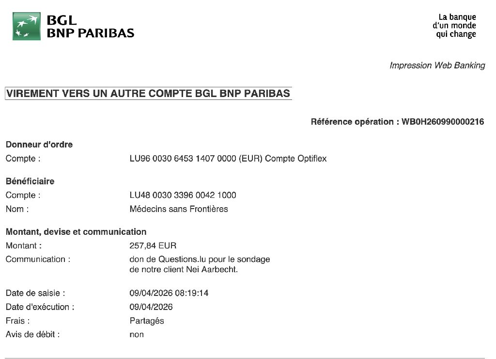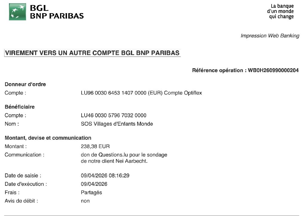 Pour un sondage avec 600 répondants, nous faisons un don de 1200 euros.