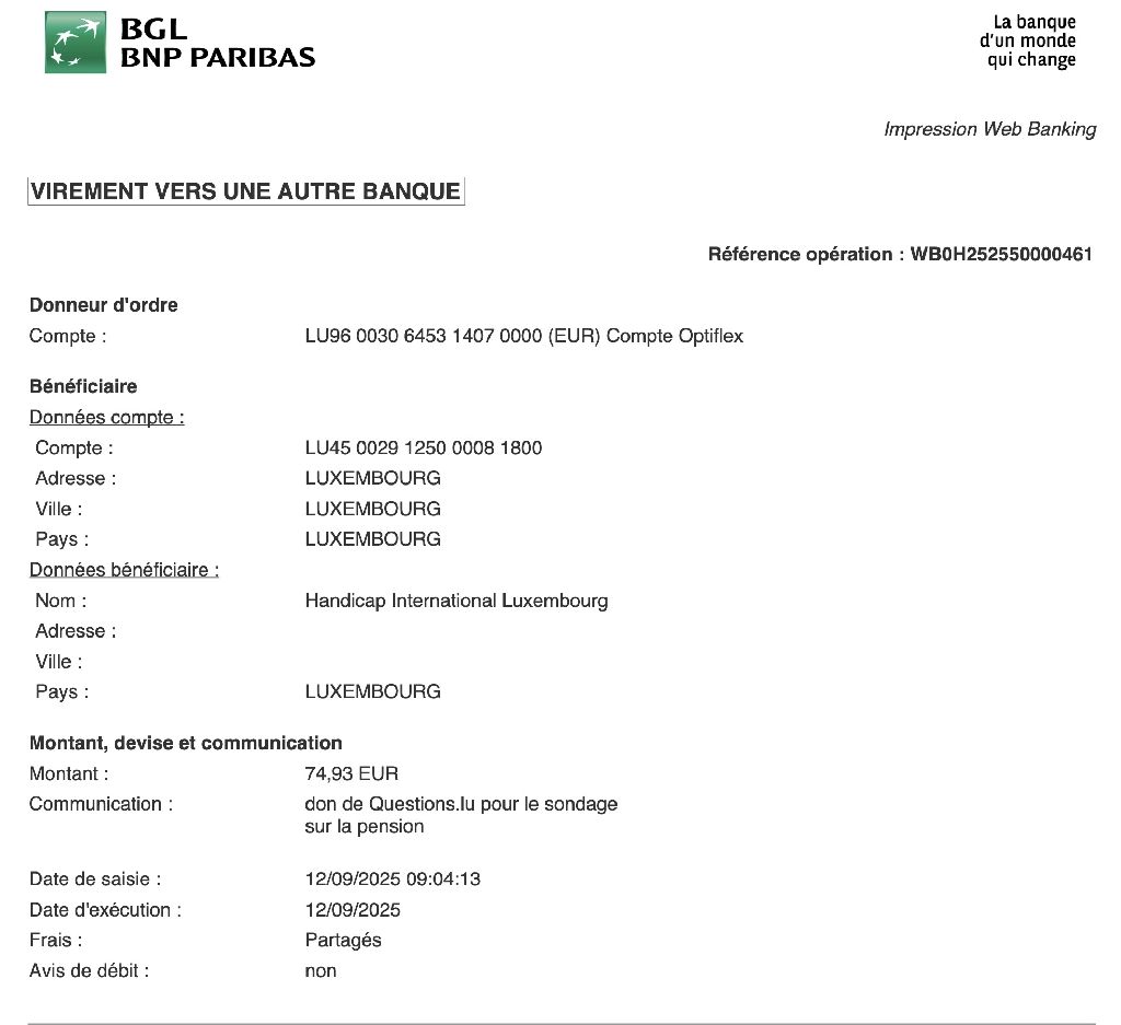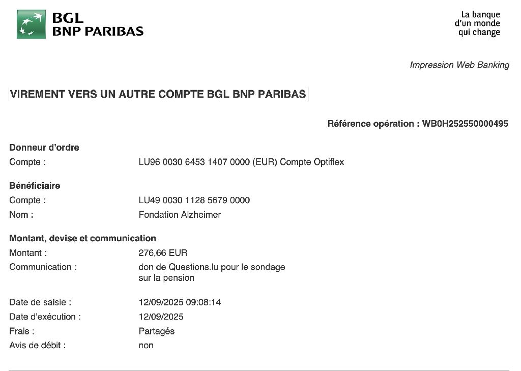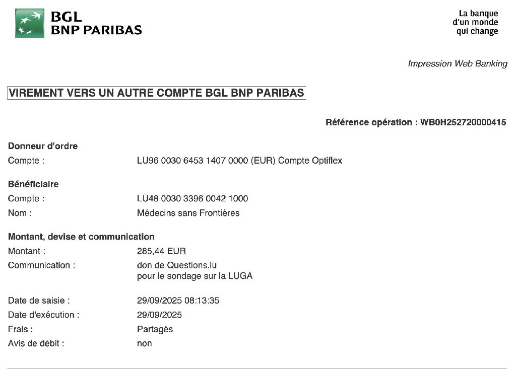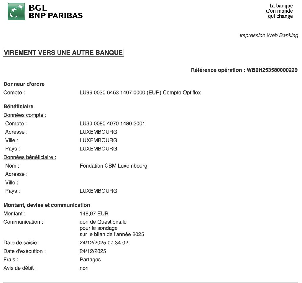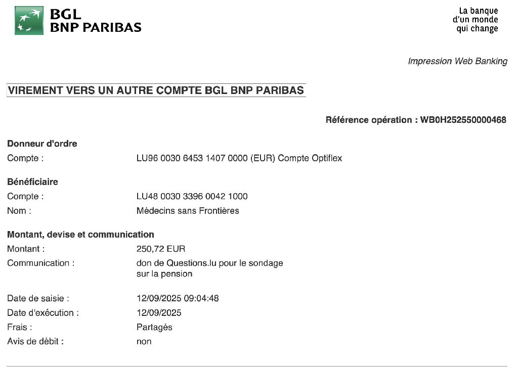 Pour un sondage avec 600 répondants, nous faisons un don de 1200 euros.
